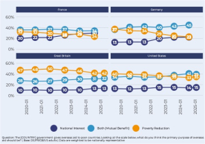 More citizens now think aid should serve donor countries’ interests. This shift is strongest in France and Germany, where public debate in the media often links aid to managing migration or national security.